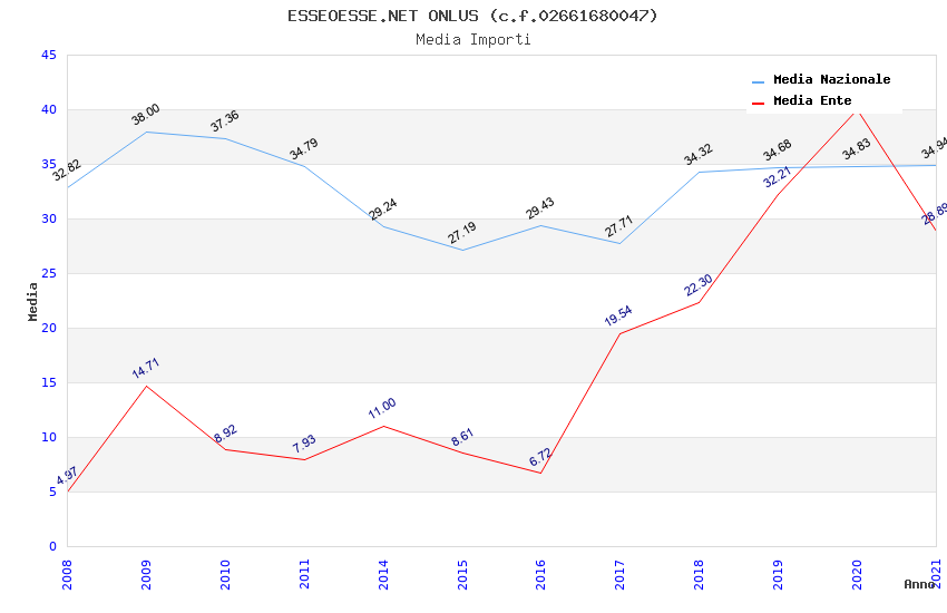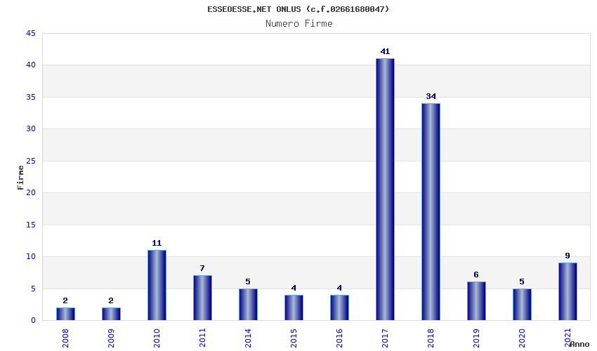 | Anno | Firme | Importi | Media | Naz. | Reg. | Prov. | Comu. |