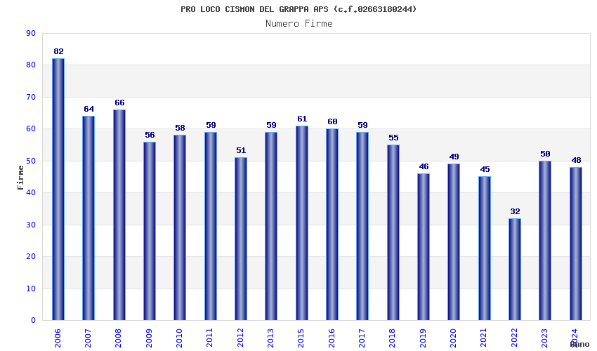 | Anno | Firme | Importi | Media | Naz. | Reg. | Prov. | Comu. |