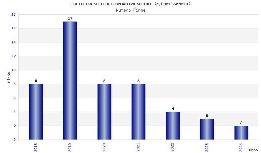 | Anno | Firme | Importi | Media | Naz. | Reg. | Prov. | Comu. |