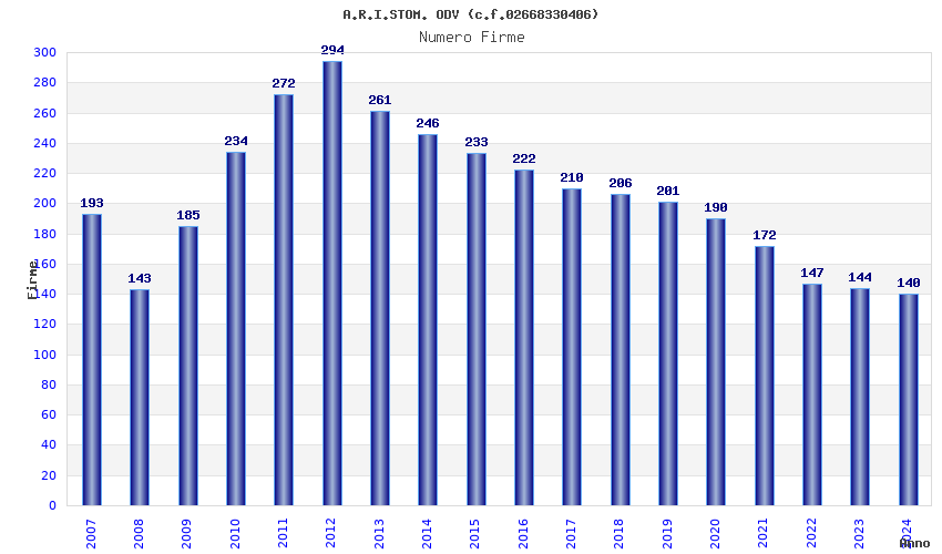 | Anno | Firme | Importi | Media | Naz. | Reg. | Prov. | Comu. |