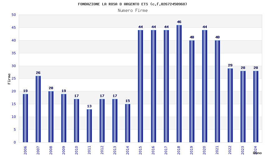 | Anno | Firme | Importi | Media | Naz. | Reg. | Prov. | Comu. |