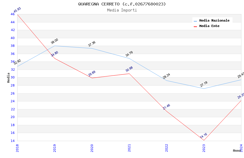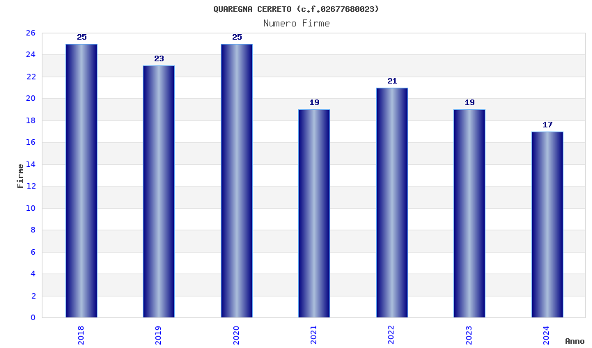 | Anno | Firme | Importi | Media | Naz. | Reg. | Prov. | Comu. |