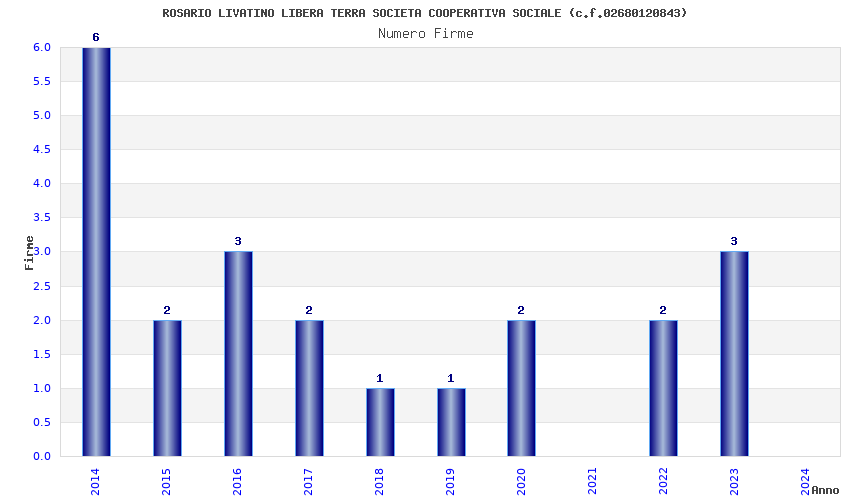 | Anno | Firme | Importi | Media | Naz. | Reg. | Prov. | Comu. |