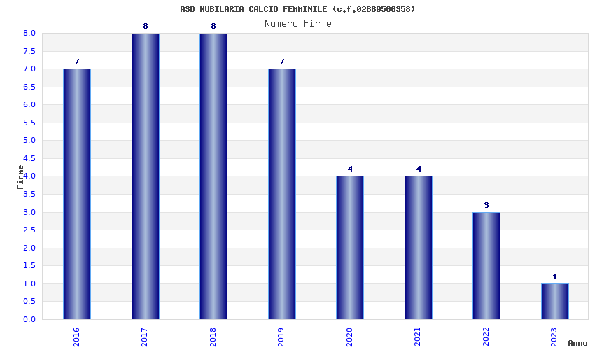 | Anno | Firme | Importi | Media | Naz. | Reg. | Prov. | Comu. |