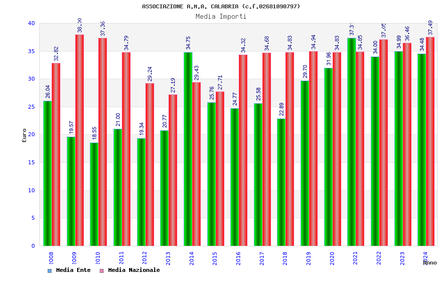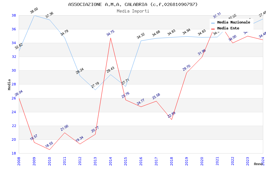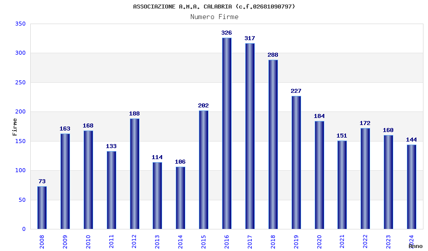 | Anno | Firme | Importi | Media | Naz. | Reg. | Prov. | Comu. |