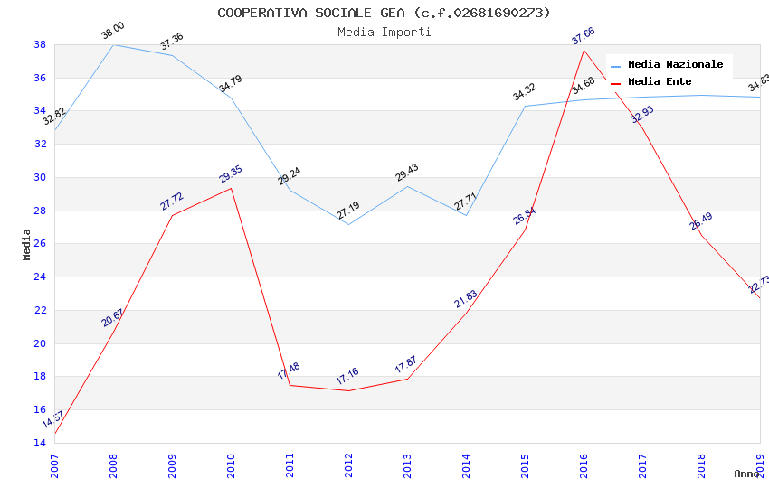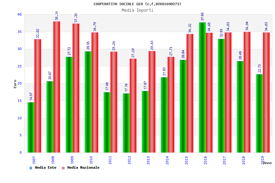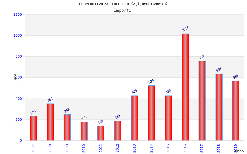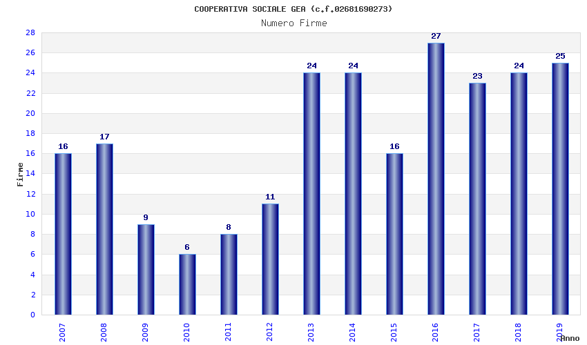 | Anno | Firme | Importi | Media | Naz. | Reg. | Prov. | Comu. |