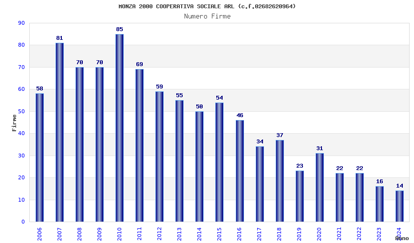 | Anno | Firme | Importi | Media | Naz. | Reg. | Prov. | Comu. |