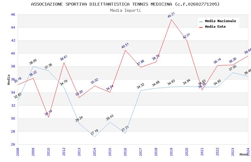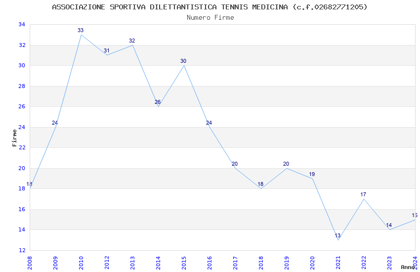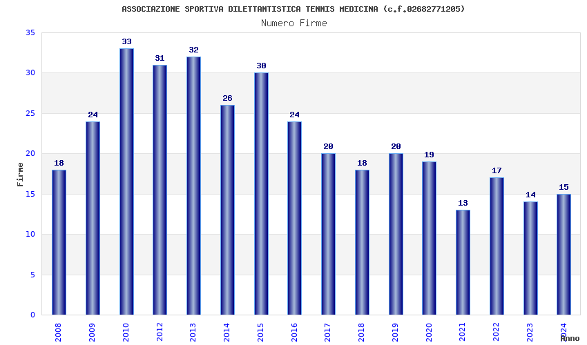 | Anno | Firme | Importi | Media | Naz. | Reg. | Prov. | Comu. |