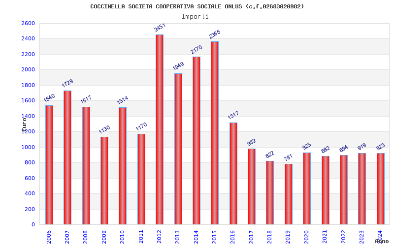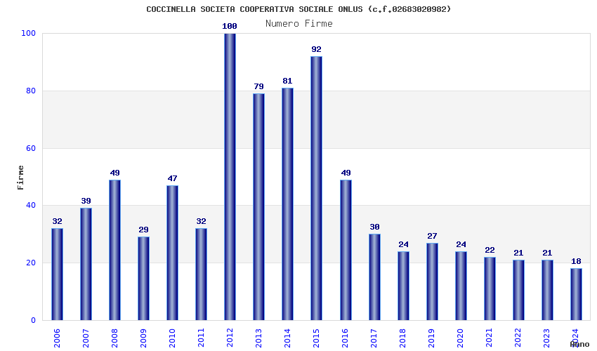 | Anno | Firme | Importi | Media | Naz. | Reg. | Prov. | Comu. |