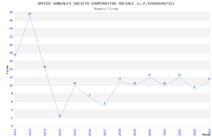 | 2011 | 17 | 340,31 | 20,02 | 26.897 | 1.116 | 149 | 1 |