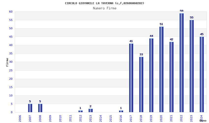 | Anno | Firme | Importi | Media | Naz. | Reg. | Prov. | Comu. |