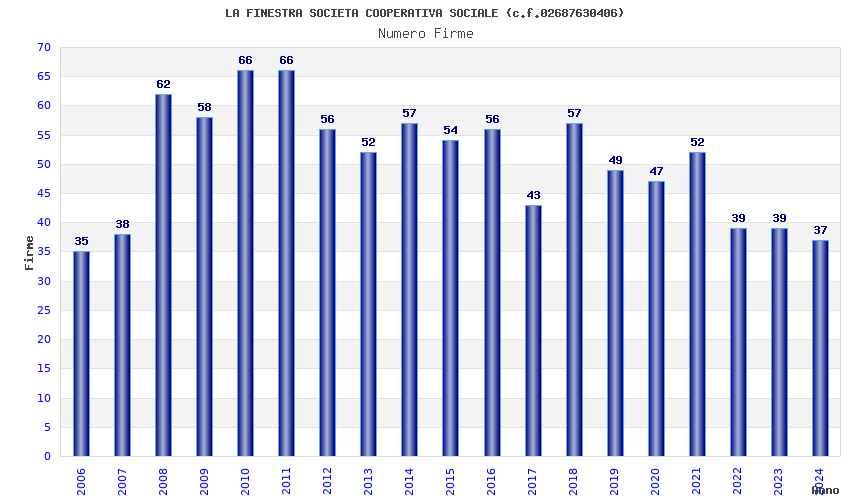 | Anno | Firme | Importi | Media | Naz. | Reg. | Prov. | Comu. |