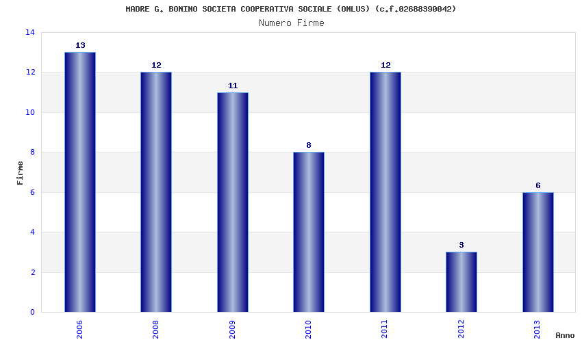 | Anno | Firme | Importi | Media | Naz. | Reg. | Prov. | Comu. |