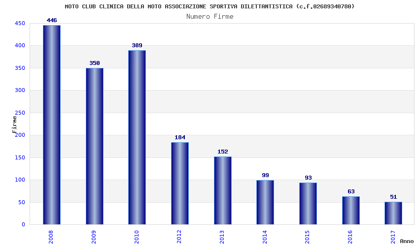 | Anno | Firme | Importi | Media | Naz. | Reg. | Prov. | Comu. |