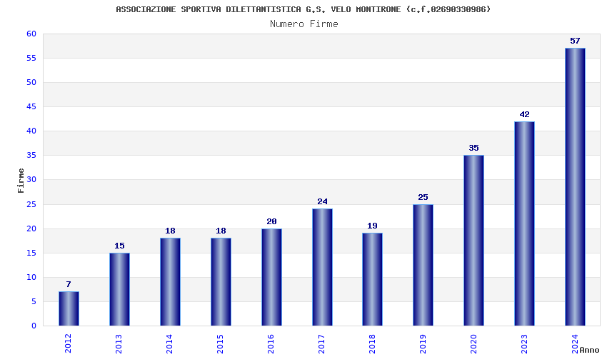 | Anno | Firme | Importi | Media | Naz. | Reg. | Prov. | Comu. |