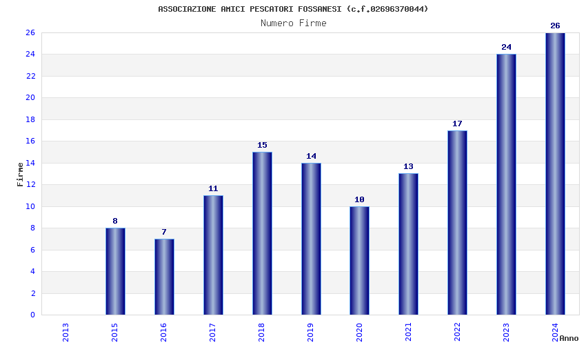 | Anno | Firme | Importi | Media | Naz. | Reg. | Prov. | Comu. |
