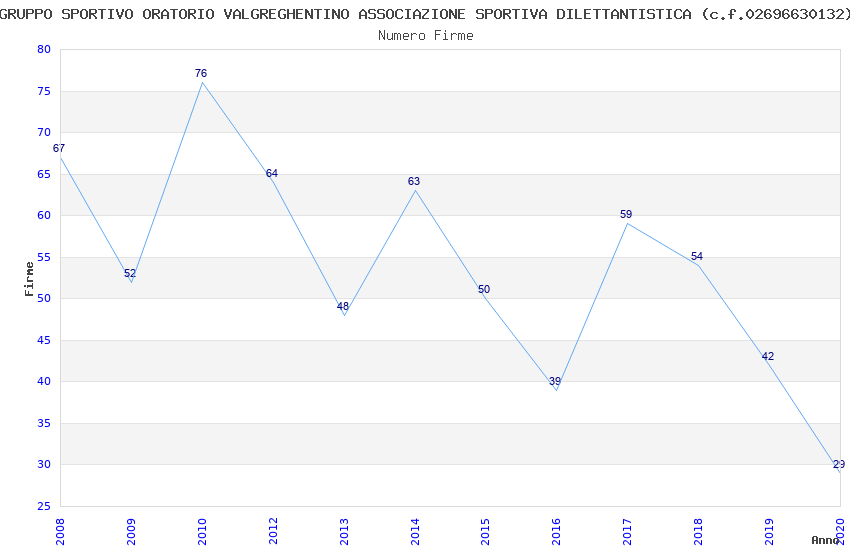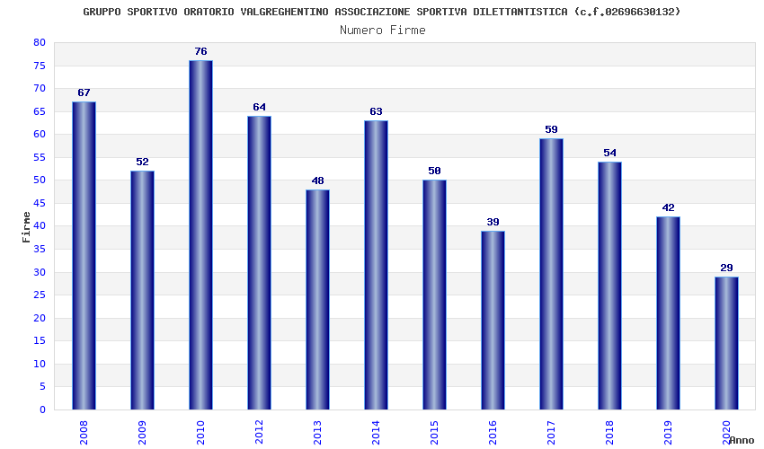 | Anno | Firme | Importi | Media | Naz. | Reg. | Prov. | Comu. |