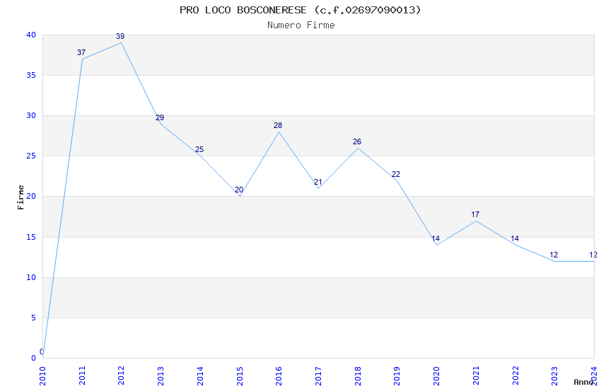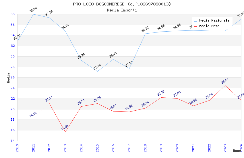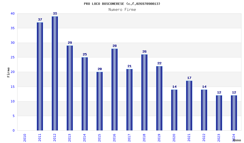 | Anno | Firme | Importi | Media | Naz. | Reg. | Prov. | Comu. |