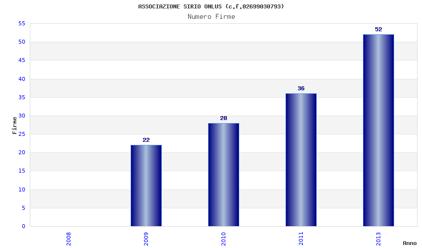 | Anno | Firme | Importi | Media | Naz. | Reg. | Prov. | Comu. |