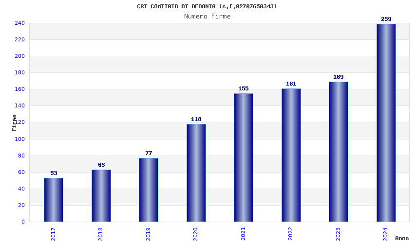 | Anno | Firme | Importi | Media | Naz. | Reg. | Prov. | Comu. |