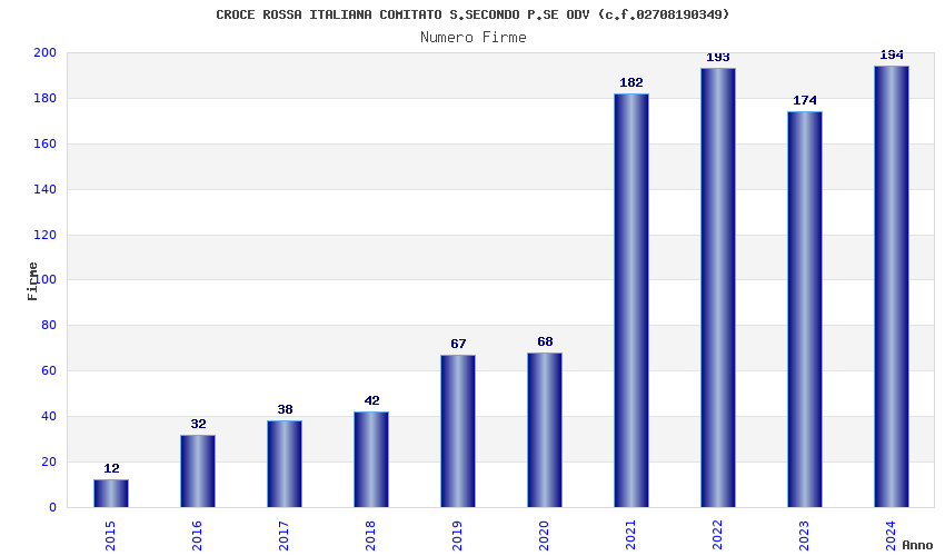 | Anno | Firme | Importi | Media | Naz. | Reg. | Prov. | Comu. |