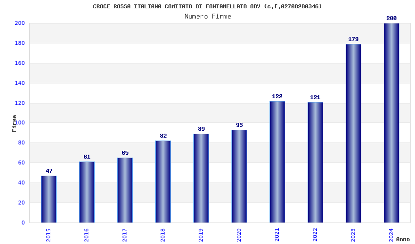 | Anno | Firme | Importi | Media | Naz. | Reg. | Prov. | Comu. |