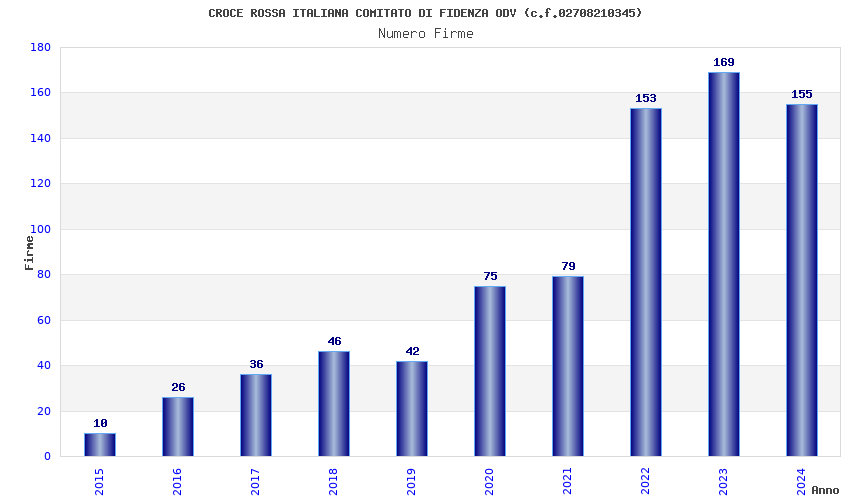 | Anno | Firme | Importi | Media | Naz. | Reg. | Prov. | Comu. |