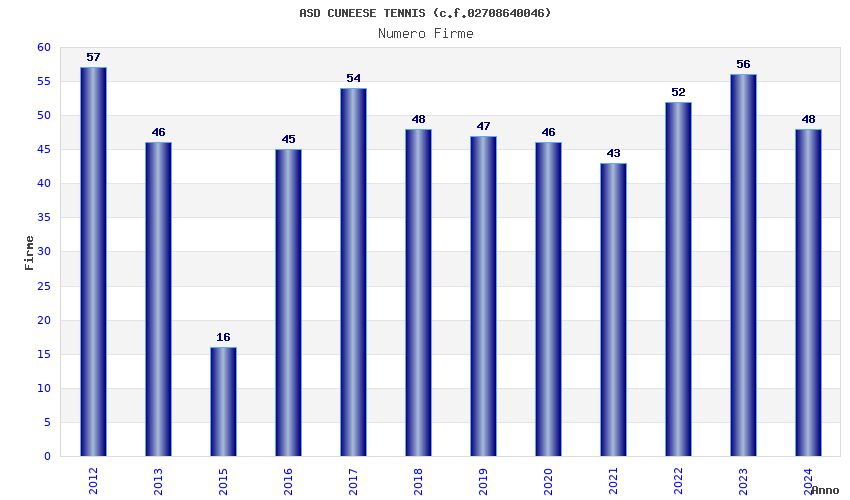 | Anno | Firme | Importi | Media | Naz. | Reg. | Prov. | Comu. |