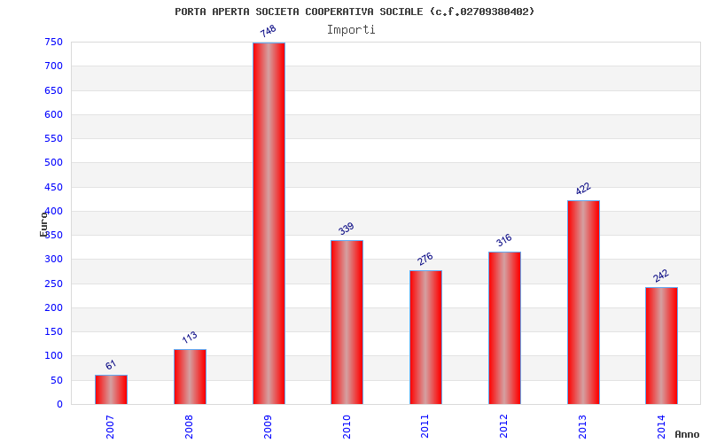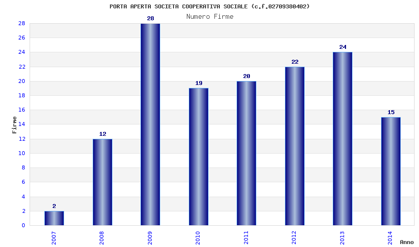 | Anno | Firme | Importi | Media | Naz. | Reg. | Prov. | Comu. |