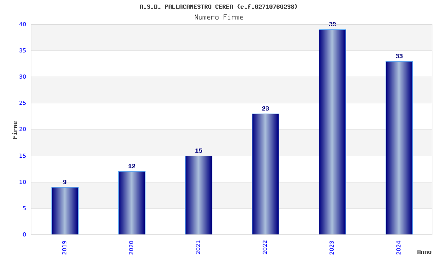 | Anno | Firme | Importi | Media | Naz. | Reg. | Prov. | Comu. |