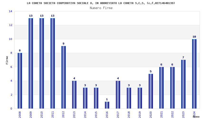 | Anno | Firme | Importi | Media | Naz. | Reg. | Prov. | Comu. |