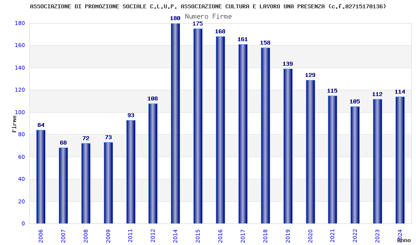 | Anno | Firme | Importi | Media | Naz. | Reg. | Prov. | Comu. |