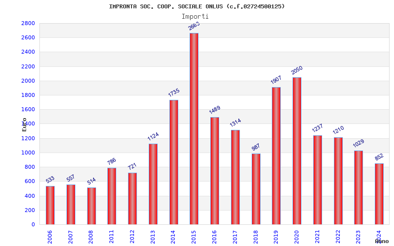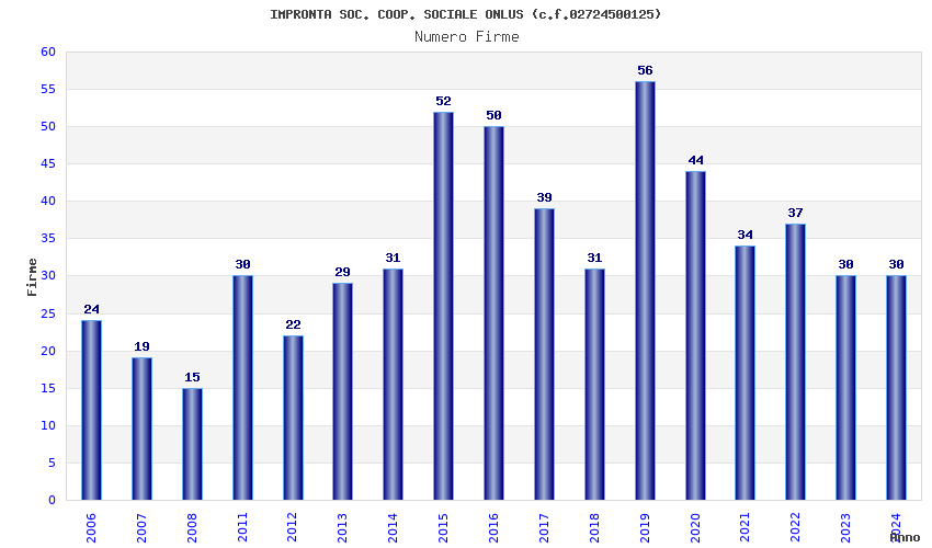 | Anno | Firme | Importi | Media | Naz. | Reg. | Prov. | Comu. |