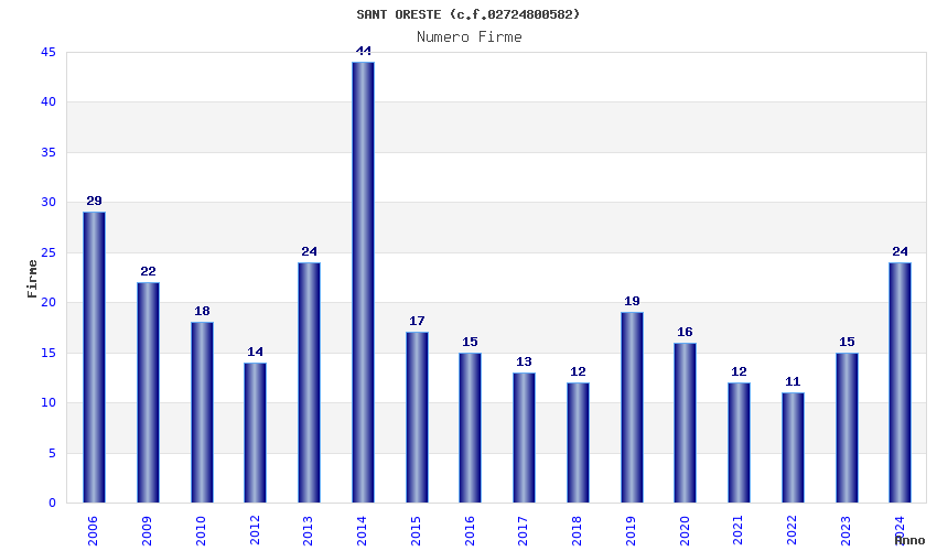 | Anno | Firme | Importi | Media | Naz. | Reg. | Prov. | Comu. |