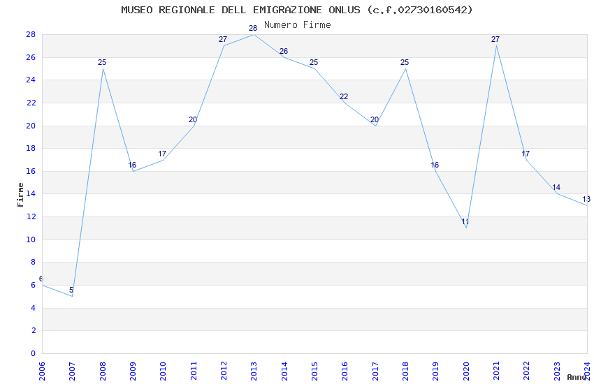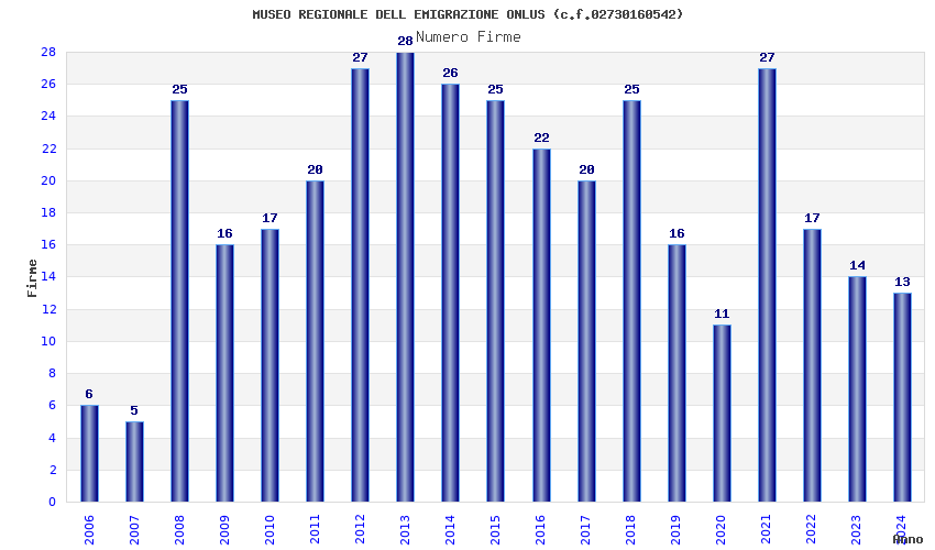 | Anno | Firme | Importi | Media | Naz. | Reg. | Prov. | Comu. |