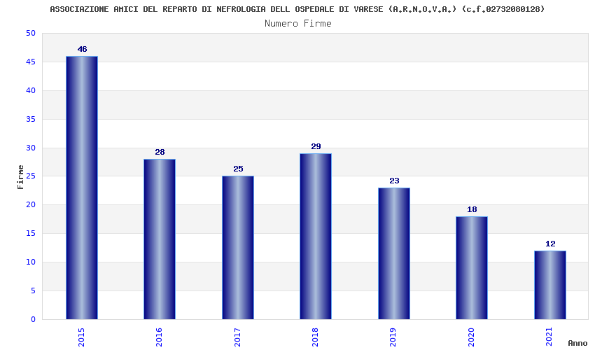 | Anno | Firme | Importi | Media | Naz. | Reg. | Prov. | Comu. |