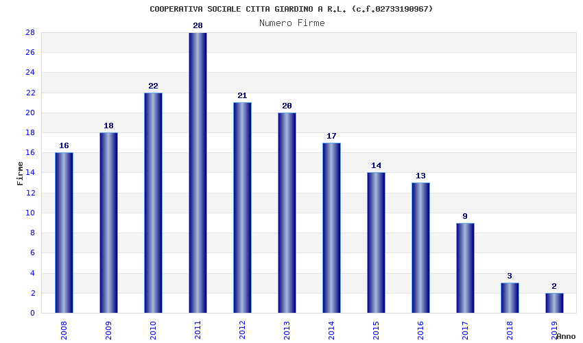 | Anno | Firme | Importi | Media | Naz. | Reg. | Prov. | Comu. |