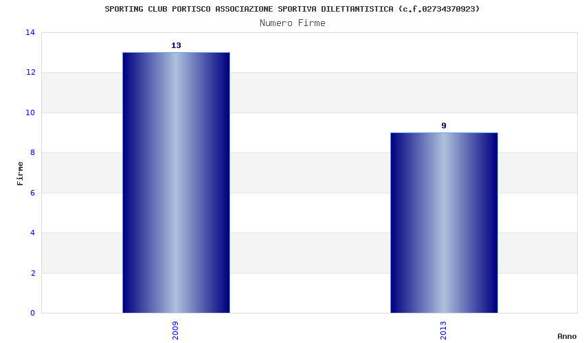 | Anno | Firme | Importi | Media | Naz. | Reg. | Prov. | Comu. |