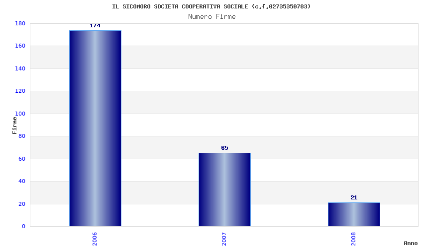 | Anno | Firme | Importi | Media | Naz. | Reg. | Prov. | Comu. |