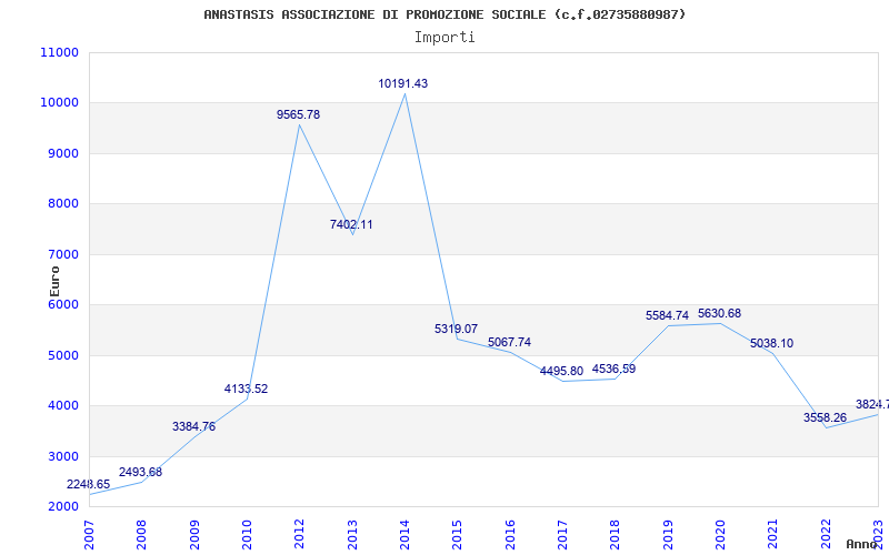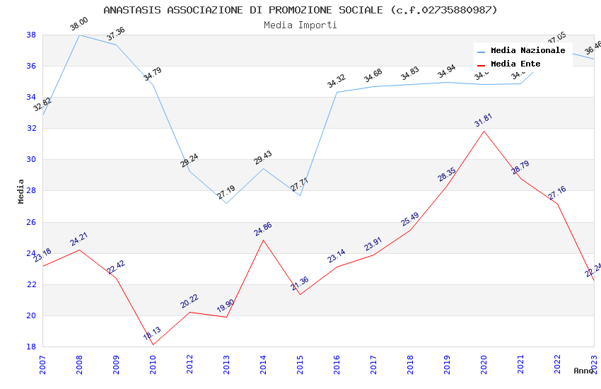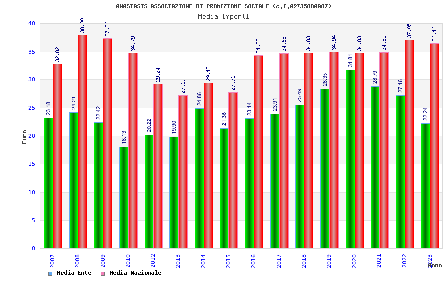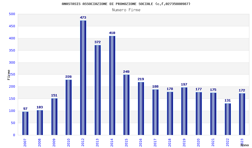 | Anno | Firme | Importi | Media | Naz. | Reg. | Prov. | Comu. |
