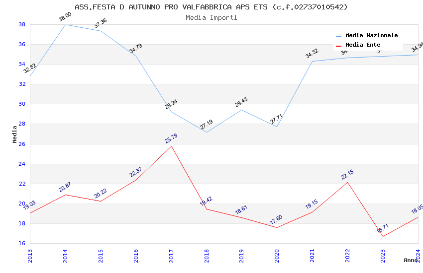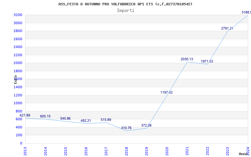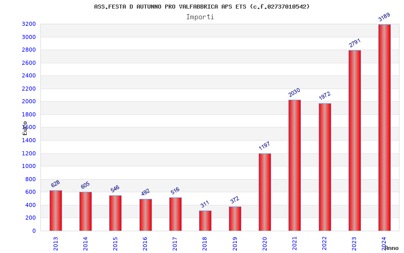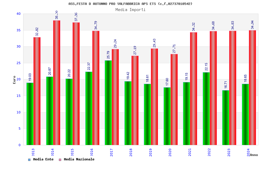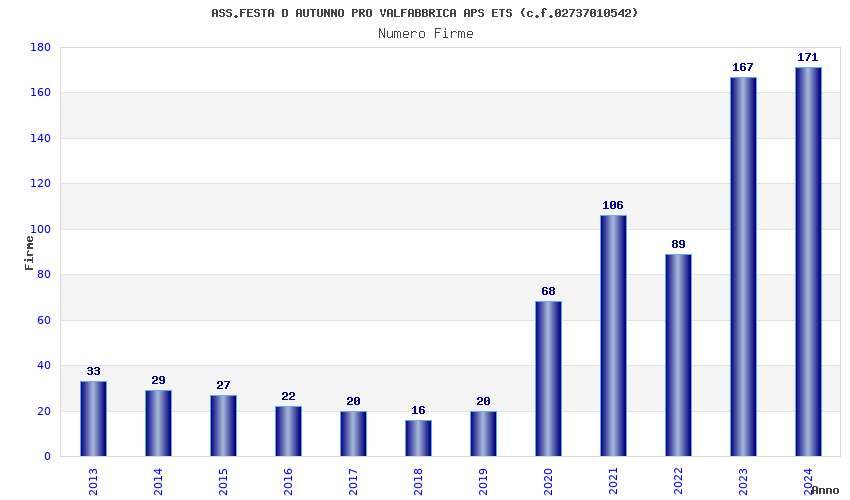 | Anno | Firme | Importi | Media | Naz. | Reg. | Prov. | Comu. |