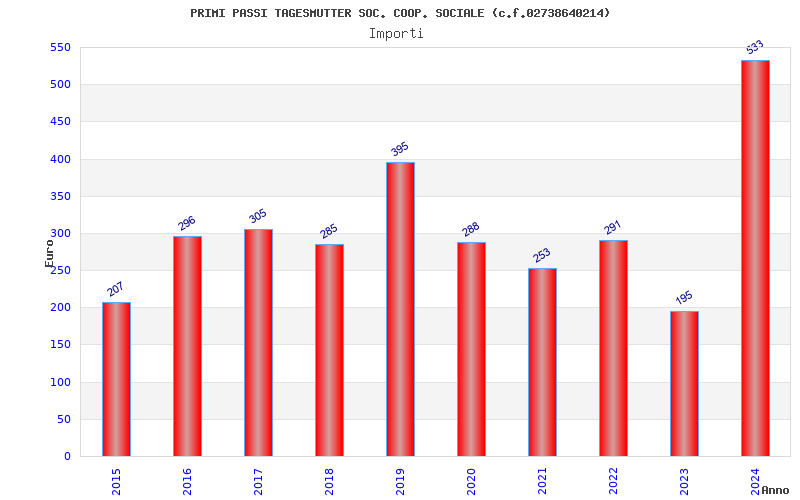 | Anno | Firme | Importi | Media | Naz. | Reg. | Prov. | Comu. |