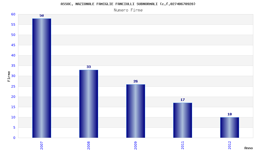 | Anno | Firme | Importi | Media | Naz. | Reg. | Prov. | Comu. |