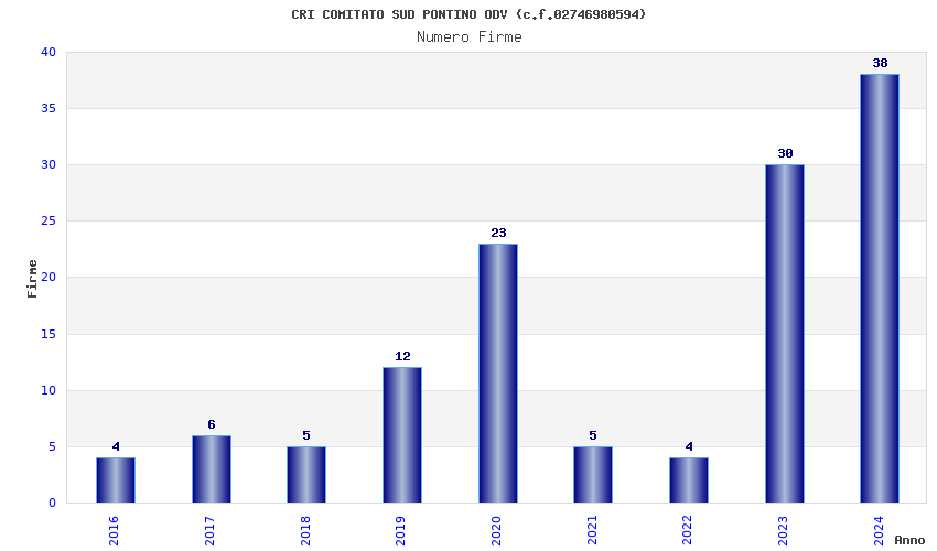 | Anno | Firme | Importi | Media | Naz. | Reg. | Prov. | Comu. |
