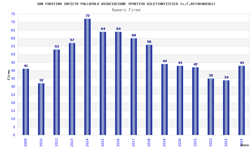 | Anno | Firme | Importi | Media | Naz. | Reg. | Prov. | Comu. |