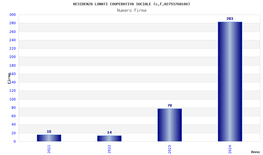 | Anno | Firme | Importi | Media | Naz. | Reg. | Prov. | Comu. |