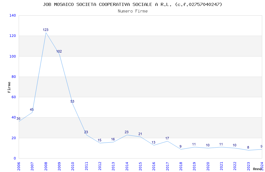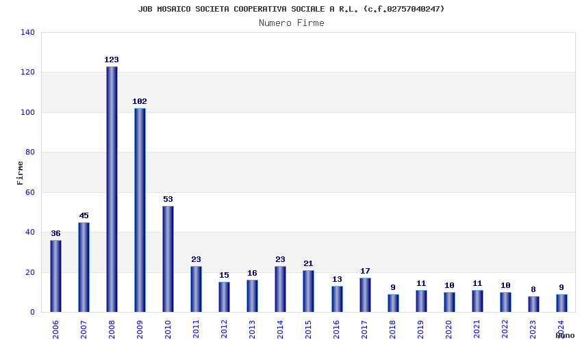 | 2008 | 123 | 3.458,69 | 28,12 | 10.904 | 957 | 172 | 5 |