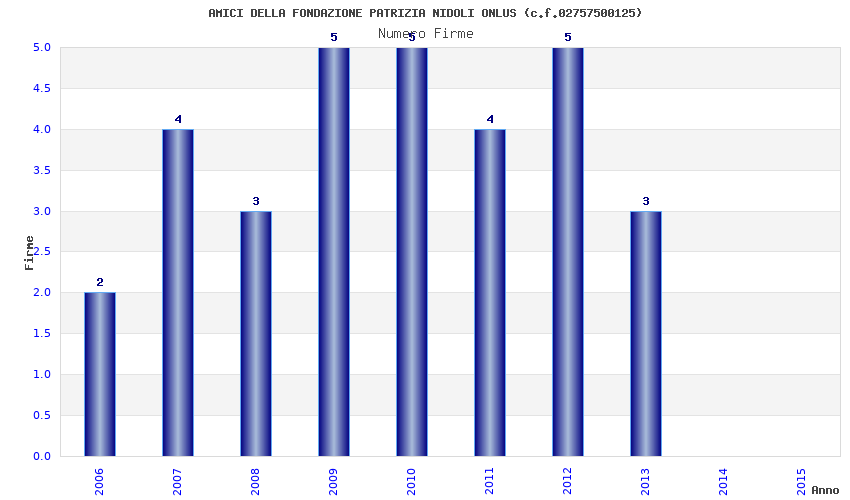 | Anno | Firme | Importi | Media | Naz. | Reg. | Prov. | Comu. |