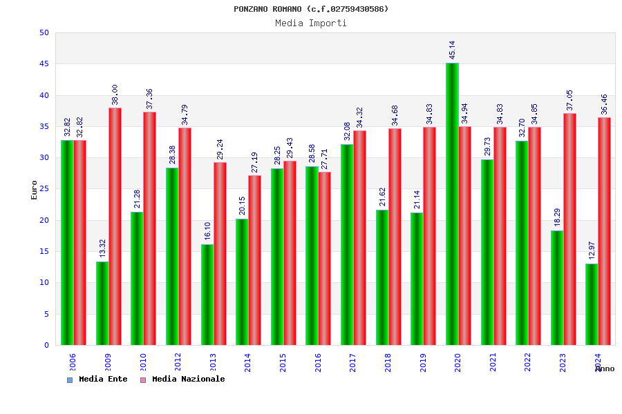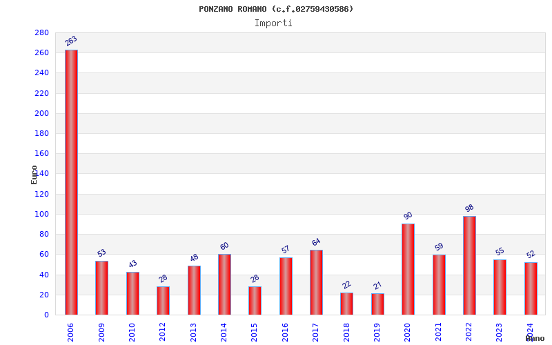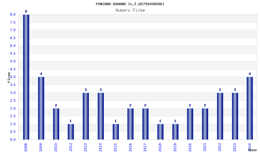 | Anno | Firme | Importi | Media | Naz. | Reg. | Prov. | Comu. |