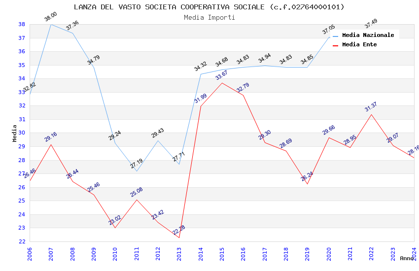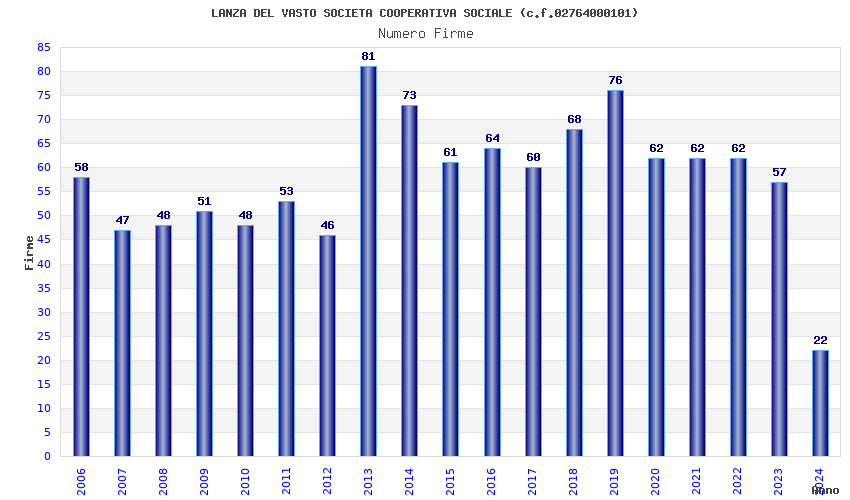 | Anno | Firme | Importi | Media | Naz. | Reg. | Prov. | Comu. |